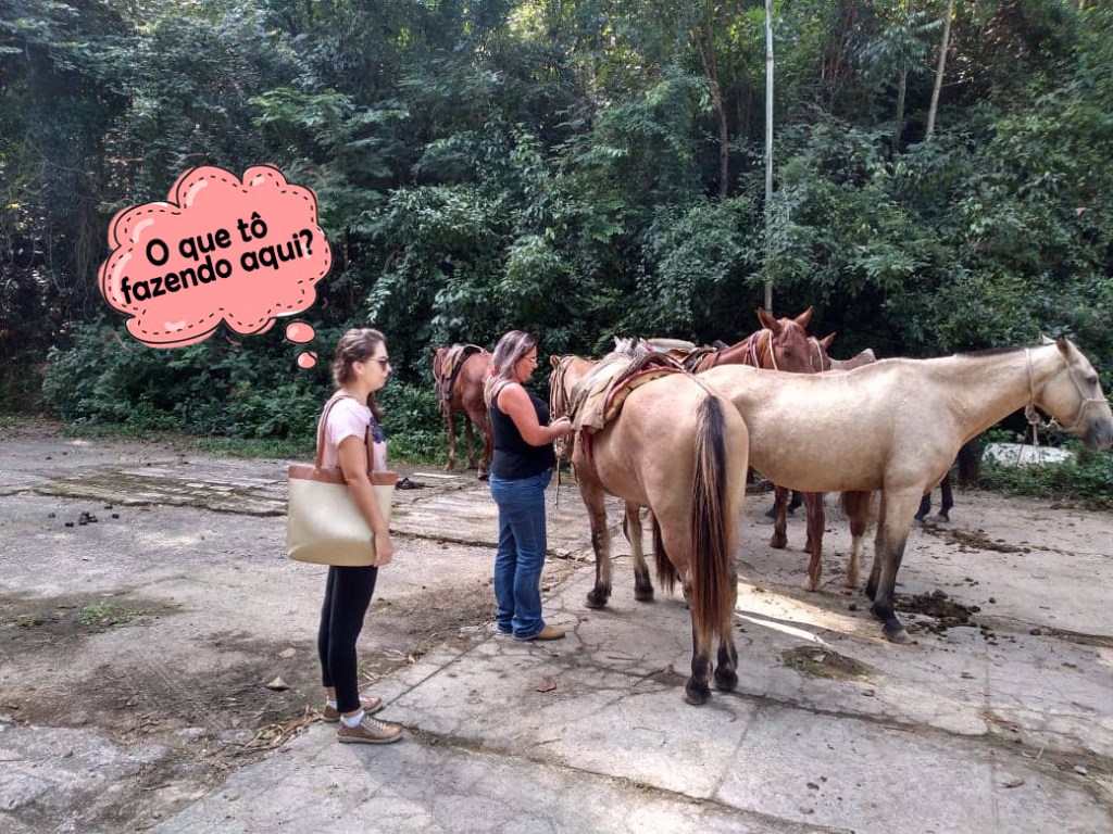De repente eu estava em Águas de São Pedro, interior de São Paulo, em frente a um cavalo. Eu olhava para ele, e ele para mim. Só havia uma escolha: cavalgar de uma vez por todas! Era isso ou eu jogaria fora todo o meu esforço para chegar ali e o valor do passeio que havia pagado.